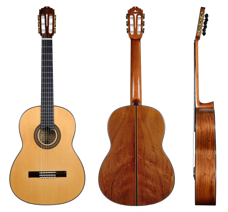 Edelstes Instrument aus unserer Werkstatt. Eine Gitarre der absoluten Spitzenklasse, die ihresgleichen sucht. Wir verwenden nur ausgesuchte und handselektierte, über Jahrzehnte in unserem Haus abgelagerte Resonanzhölzer. Feinste und modernste klangliche Ausarbeitung sind bei diesem Modell Usus. Boden und Zargen sind wahlweise und nach Verfügbarkeit auch aus Rio-Palisander verfügbar. Eine individuelle Gestaltung des Instrumentes ist selbstverständlich, genauso wie die Scheller Mechanik und das edle BAM Etui.